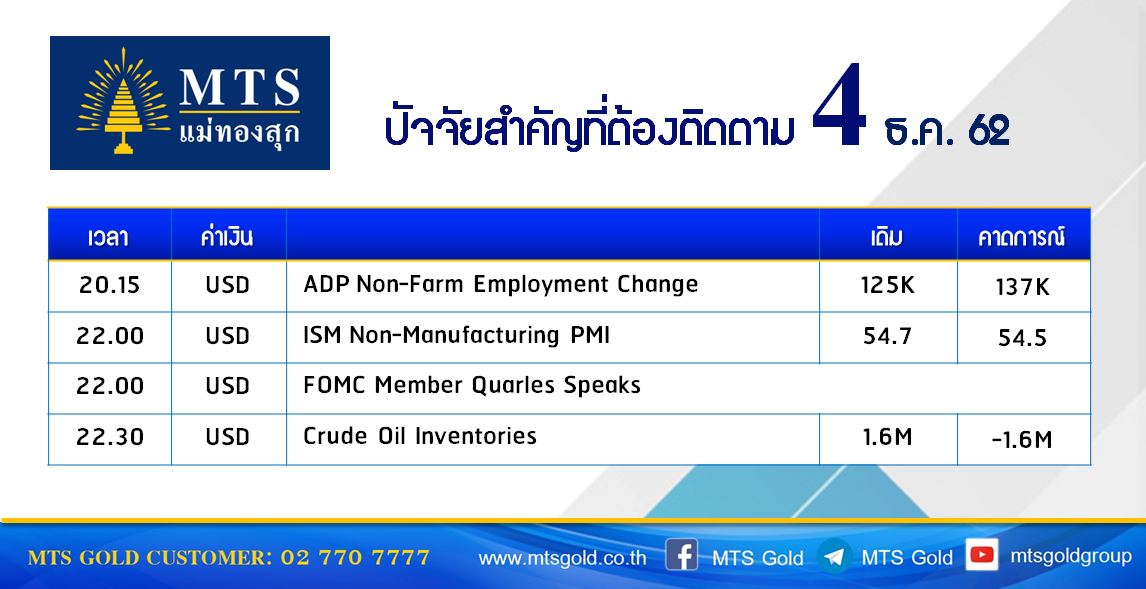 · ราคาน้ำมันดิบมีการปรับตัวทั้งขึ้นและลงก่อนการประชุมโอเปกในวันพฤหัสบดีนี้ โดยน้ำมันดิบ WTI ปิดปรับขึ้น 14 เซนต์ ที่ 56.10 เหรียญ/บาร์เรล ในขณะที่น้ำมันดิบ Brent ปรับลง 5 เซนต์ ที่ 60.87 เหรียญ/บาร์เรล ท่ามกลางกระแสคาดการณ์ถึงสัญญาณการปรับลดกำลังการผลิตจากกลุ่มโอเปกและกลุ่มผู้ผลิตนอกโอเปกอื่นๆ หลังจากที่นายโดนัลด์ ทรัมป์ ประธานาธิบดีสหรัฐฯ เผยการทำข้อตกลงกับจีนอาจเลื่อนออกไปหลังการเลือกตั้งประธานาธิบดีสหรัฐฯในช่วงพ.ย. ปี 2020 จึงบั่นทอนความหวังที่จะเห็นการแก้ไขปัญหาได้โดยเร็วเพื่อยุติข้อพิพาททางการค้าที่กำลังเข้ากดดันเศรษฐกิจโลก