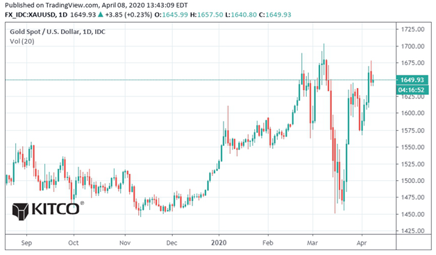 · ราคาทองคำปรับสูงขึ้นเนื่องจากการอ่อนค่าของเงินดอลลาร์ ท่ามกลางตลาดที่มีความเชื่อมั่นดีขึ้นจากความหวังว่าการระบาดของไวรัสโคโรนาได้เข้าใกล้หรือทำจุดสูงสุดไปแล้ว