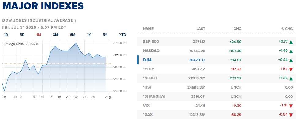 ภาพรวมดัชนี S&P500 ปิดปรับขึ้นต่อเนื่องเป็นสัปดาห์ที่ 4 ในรอบ 5 สัปดาห์ และภาพรวมเดือนก.ค. ถือเป็นเดือนที่ปิดบวกได้อย่างต่อเนื่องเป็นเดือนที่ 4 โดยปิด +5.52% ทางด้านดาวโจนส์ปิด +2.39% ในเดือนนี้ และ Nasdaq ปิดรายเดือนที่ +6.83%