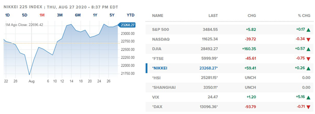 ดัชนีดาวโจนส์และดัชนี S&P500 ปรับตัวสูงขึ้น หลังจากที่เฟดเปิดเผยกรอบการทำงานใหม่ที่อาจคงอัตราดอกเบี้ยต่ำได้เป็นระยะเวลานานขึ้น